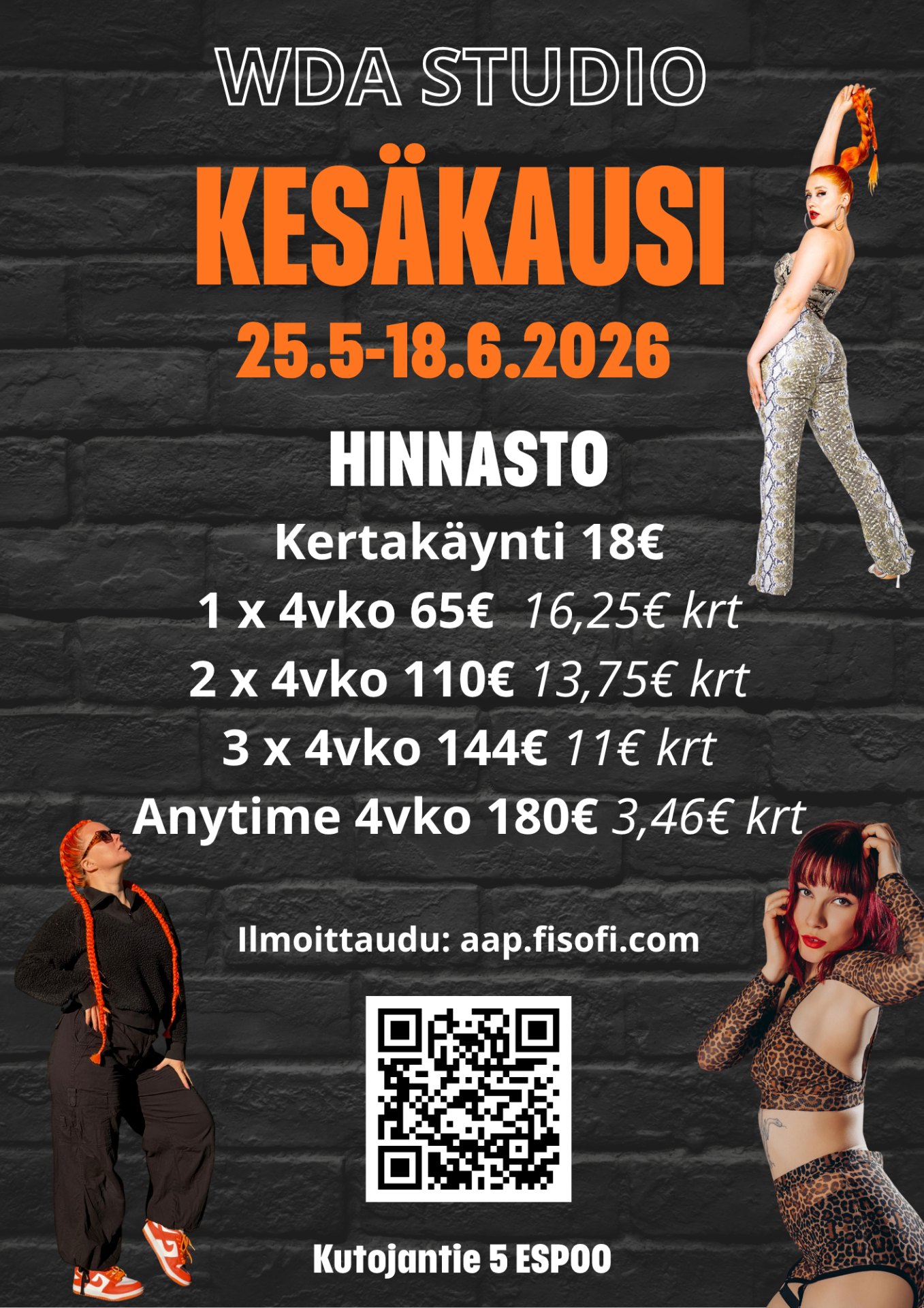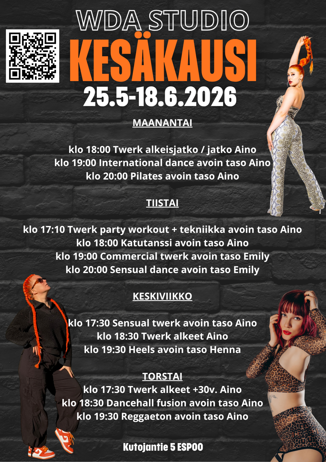Kesän energisimmät hetket syntyvät tanssilattialla! 💃Olitpa aloittelija tai kokenut tanssija, löydät varmasti oman suosikkisi – nyt on täydellinen aika kokeilla uutta tai syventää osaamistasi!